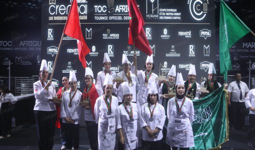 فاز المغرب، بمراكش، بكأس إفريقيا والشرق الأوسط للطاهيات (كأس مرجان حليمة)، أحد المنافسات البارزة في النسخة الـ11 من المعرض الدولي “كريماي” للضيافة وفنون الطبخ والصناعات الغذائية، المنظم تحت الرعاية السامية لصاحب الجلالة الملك محمد السادس (19 -23 شتنبر).